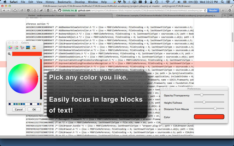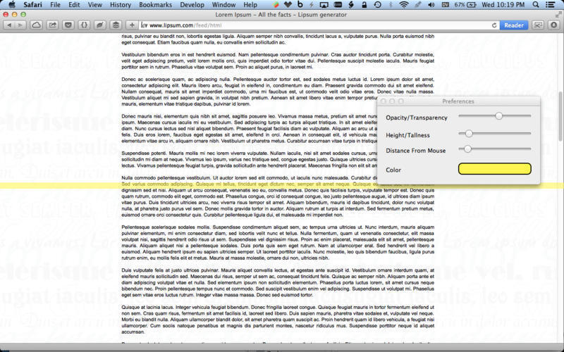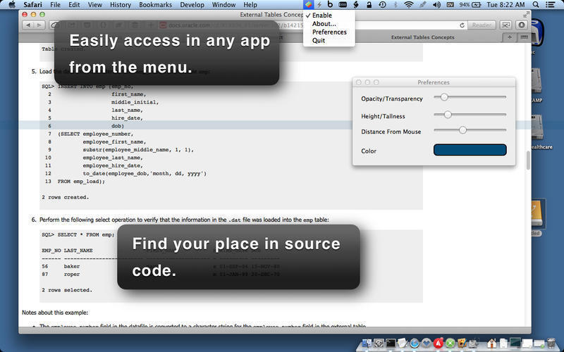 Try to use a bookmark on your monitor and it's awkward. Until now. Overlays! displays a colored, see-through bar on your screen that's controlled by your mouse.